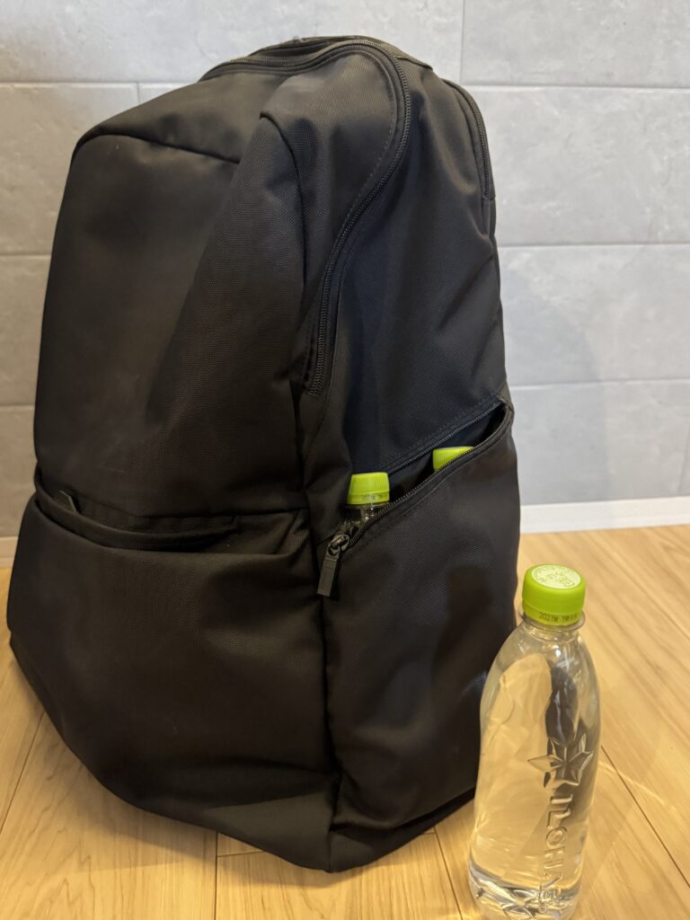 - サイドポケット✖️2:ジッパー付きで安心、口が広く、片側だけで500mlボトルが2個入る